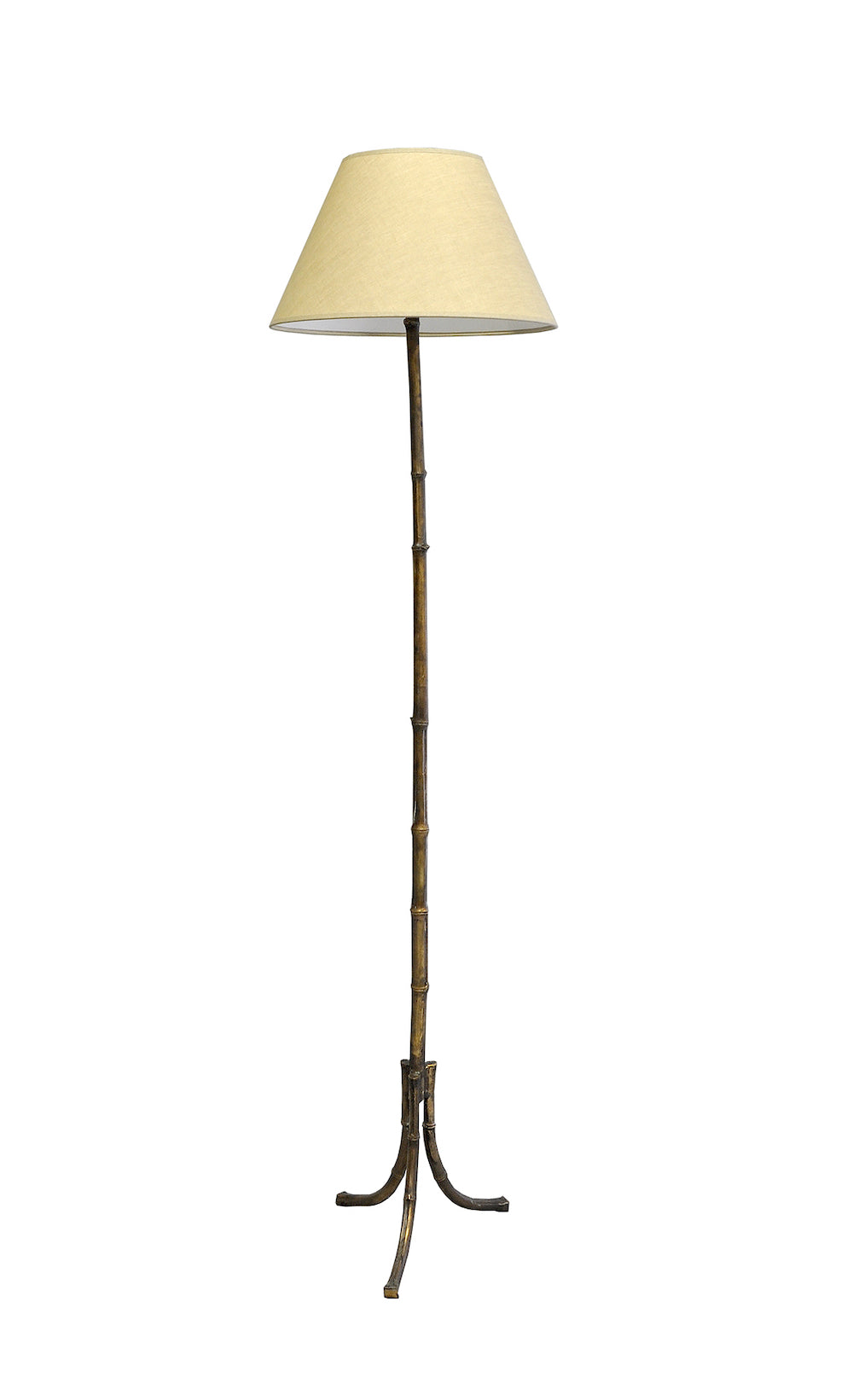 Cast bronze standing lamp in polished finish.