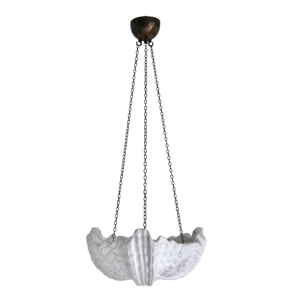 Cast plaster shell shaped ceiling light in white finish. Handcrafted product. Surface finish and color will vary in each piece.